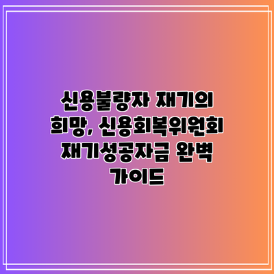 신용불량자 재기의 희망, 신용회복위원회 재기성공자금 완벽 가이드