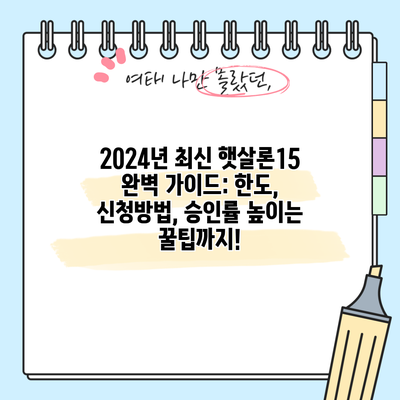 2024년 최신 햇살론15 완벽 가이드: 한도, 신청방법, 승인률 높이는 꿀팁까지!