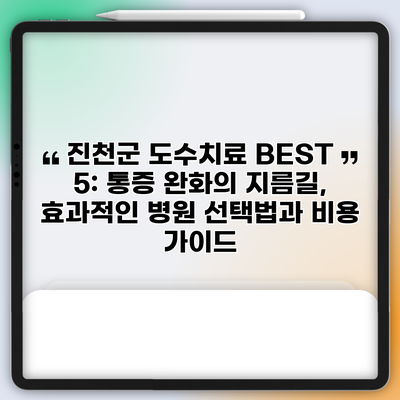 진천군 도수치료 BEST 5: 통증 완화의 지름길, 효과적인 병원 선택법과 비용 가이드