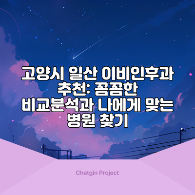 고양시 일산 이비인후과 추천: 꼼꼼한 비교분석과 나에게 맞는 병원 찾기