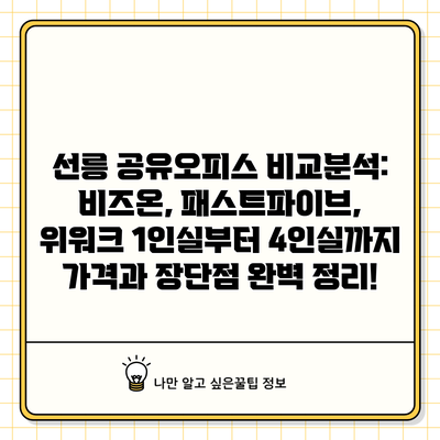 선릉 공유오피스 비교분석: 비즈온, 패스트파이브, 위워크 1인실부터 4인실까지 가격과 장단점 완벽 정리!